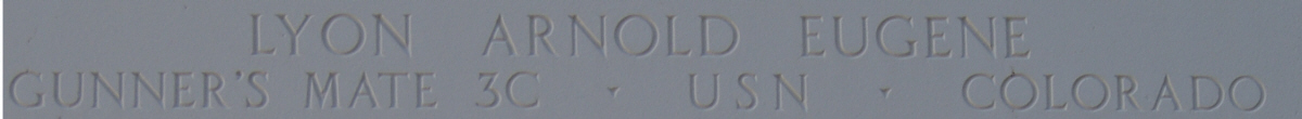 | Gunner's Mate, Third Class Arnold Eugene LYON | 3720439 | US Navy | December 7, 1941 | N/K | Honolulu Memorial | Pearl Harbor Visitor Center Memorials | e:Colorado | memorial | memorial |