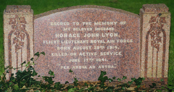 | Flight Lieutenant Horace John LYON | 37975 | Royal Air Force | June 17, 1941 | 23 | Bicester Cemetery | b:29/08/1914; w:Mary Ellison Lyon of Bicester | ||||